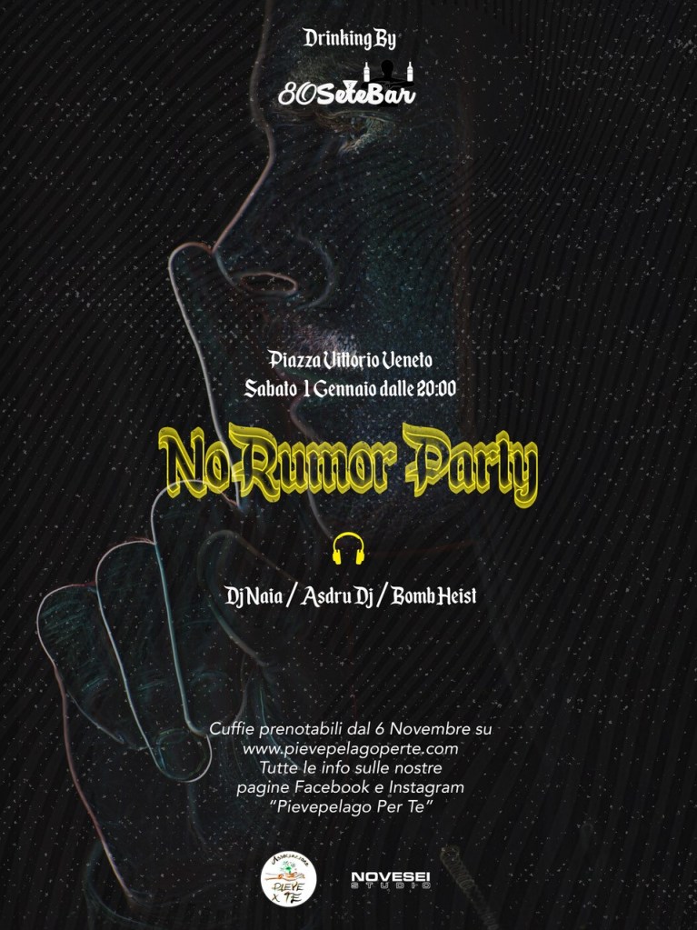 SABATO 01 GENNAIO 2022 VI ASPETTIAMO IN PIAZZA VITTORIO VENETO CON LA PRIMA EDIZIONE DEL “NO RUMOR PARTY”!